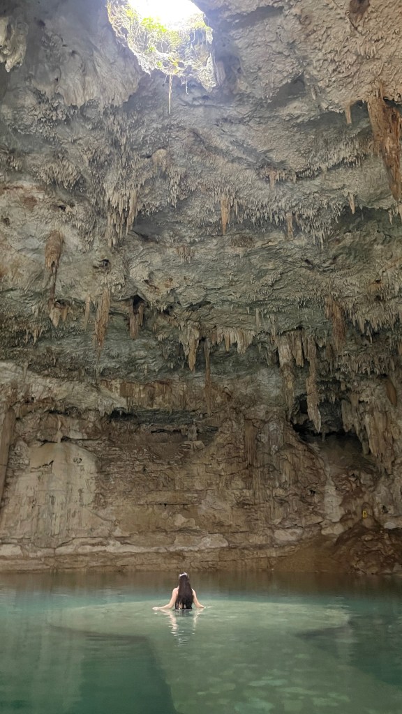 - Cenote Suytun: In the afternoon, we visited Cenote Suytun, known for its picturesque platform jutting out into the water, illuminated by a single beam of light from above. This cenote, more enclosed than Il Kil, had a serene and mystical atmosphere. Swimming here felt like being in an underground cathedral, with the cool water providing a welcome respite from the tropical heat.